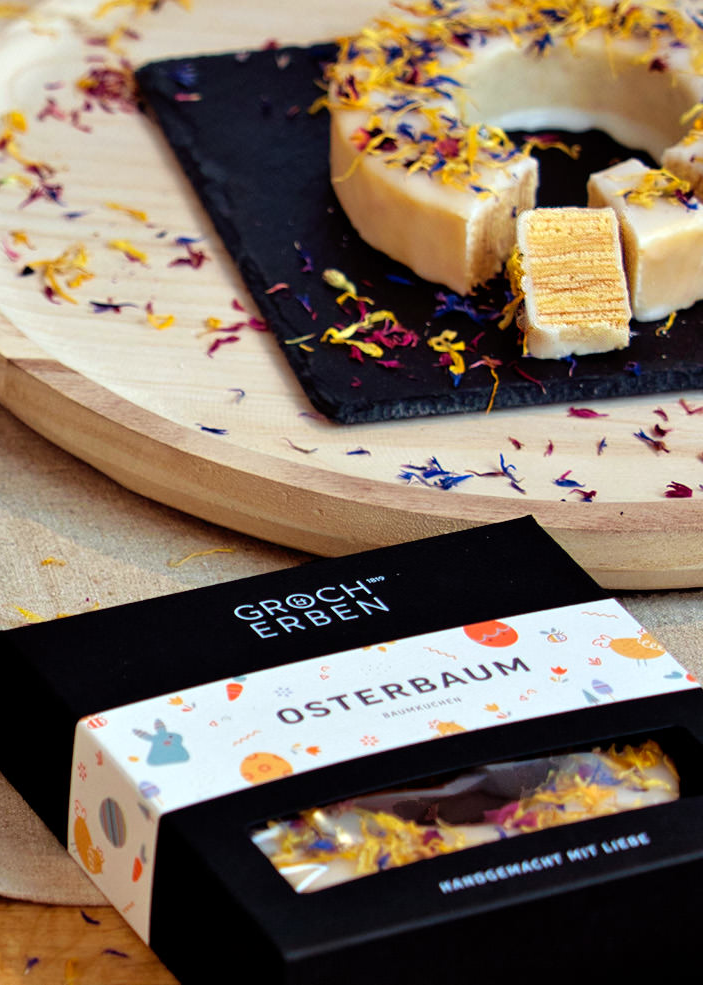 Seit jeher steht GROCH & ERBEN für die Geschichte leidenschaftlicher traditioneller Handwerkskunst und ganzjährig hochwertigen Baumkuchen. Unsere stolze Tradition einen wir mit der Vorliebe für Nachhaltigkeit und außergewöhnlichen Genuss.