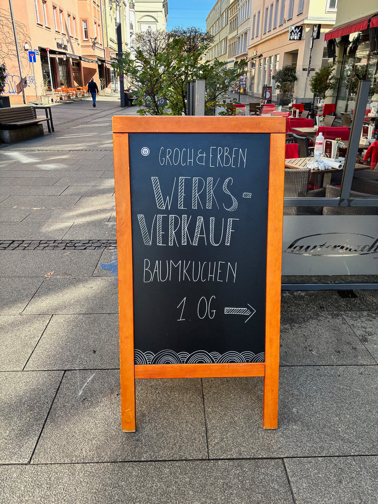 Im Herzen der Cottbuser Altstadt findest du unseren Baumkuchen-Werksverkauf – im ersten Obergeschoss, direkt über dem Café Lauterbach in der Spremberger Straße 4 (Eingang zwischen dem Café und dem ADAC-Shop).